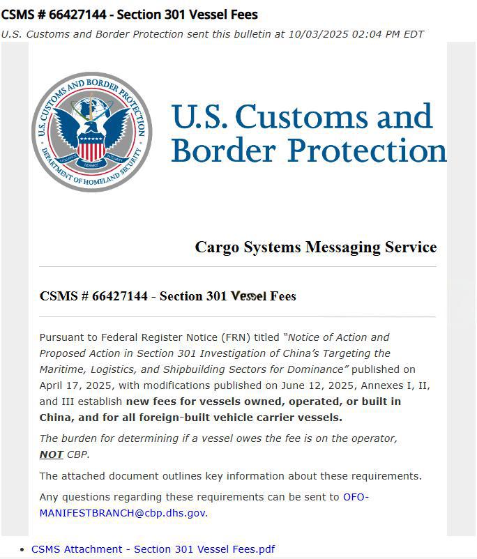 跨境小伙伴们快坐好,安全带系系紧,今天咱来聊聊最近把全球航运圈惊掉下巴的大新闻——美国海关掏出的《第301条款船舶费用》,这哪是什么政策文件,分明是份打印精美的、单方面的“打劫说明书”!